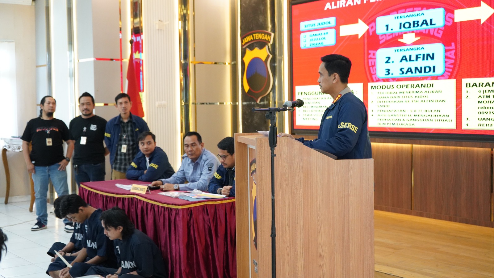 Kota Semarang, Jawa Tengah (23 Oktober 2024) Polrestabes Semarang menggelar konferensi pers hari ini yang mengungkap hubungan mengejutkan antara perjudian online dan kelompok gangster di Kota Semarang, Investigasi menemukan jaringan pendanaan di mana situs perjudian online mendanai aktivitas berbagai klompok gangster.