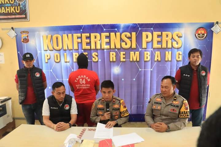 “ Sekira pukul 00.30 WIB, mendapati seorang dengan ciri-ciri sebagaimana informasi yang didapatkan dan kemudian anggota Satresnarkoba Polres Rembang mengamankan seorang tersebut yang diketahui atas nama Terlapor,” jelas Wakapolres Rembang Kompol M Fadhlan, pada Jumat (29/11/2029), saat Konferensi Pers di Mapolres Rembang.