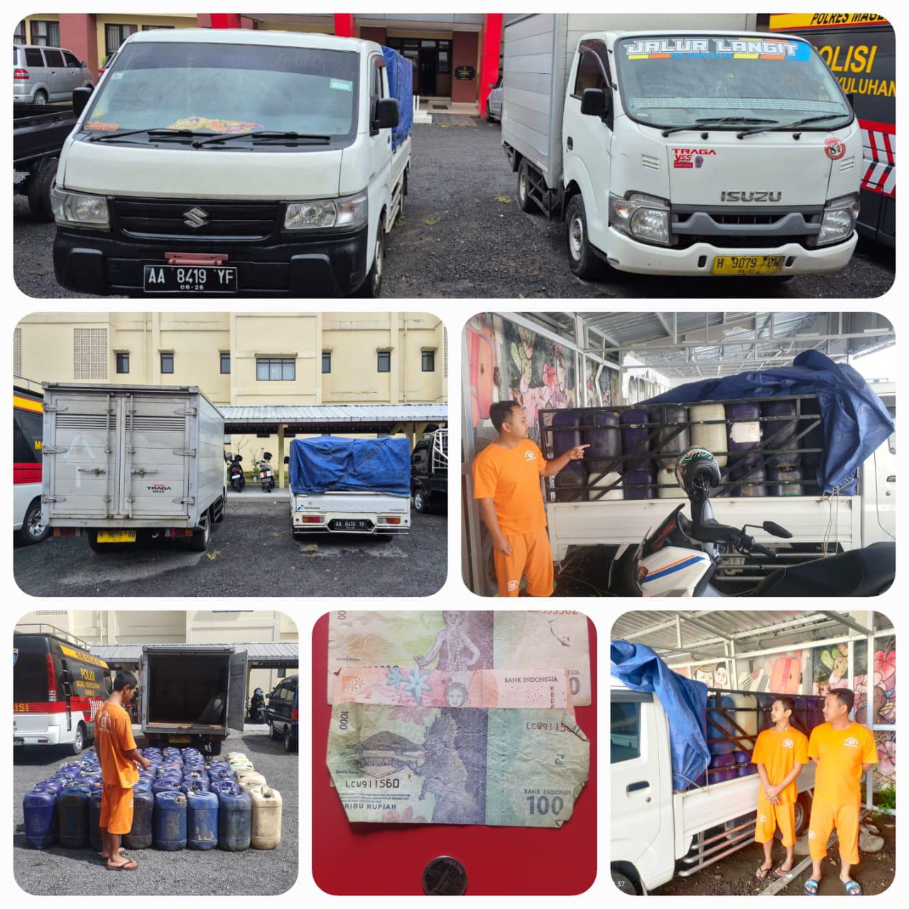 Kapolres Magelang Kota, AKBP Anita Indah Setyaningrum, SIK, MH, menjelaskan penyidik mengamankan satu unit mobil Suzuki Carry Pickup, satu unit mobil Box Isuzu Traga, dan 80 djerigen berisi sekitar 2720 liter pertalite di lokasi depan Balai Desa/Kelurahan Kebonagung, Desa Kebonagung, Kecamatan Bandongan, Kabupaten Magelang.