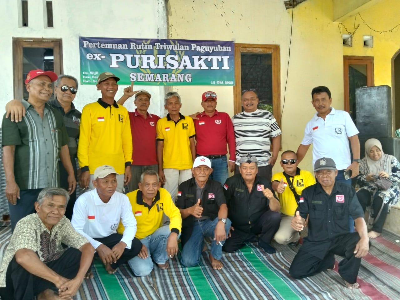 Paguyuban eks-Purisakti Semarang menggelar pertemuan rutin triwulanan yang berlangsung di Desa Wijil, Kecamatan Bergas, Kabupaten Semarang, pada Minggu (12/10/2025). Pertemuan tersebut dihadiri para anggota serta donatur yang selama ini aktif mendukung kegiatan sosial paguyuban.