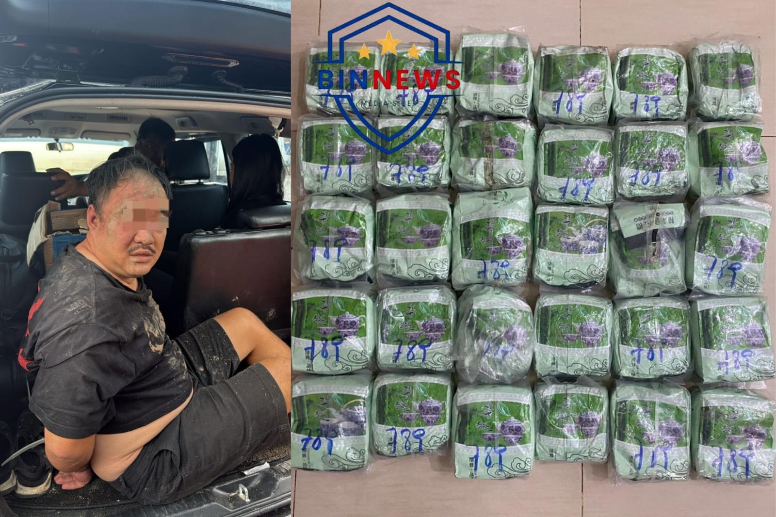 “Setelah dilakukan pemeriksaan, ditemukan 30 bungkus besar berlogo teh hijau yang diduga berisi sabu, disembunyikan di beberapa bagian mobil,” papar Kombes Putu.