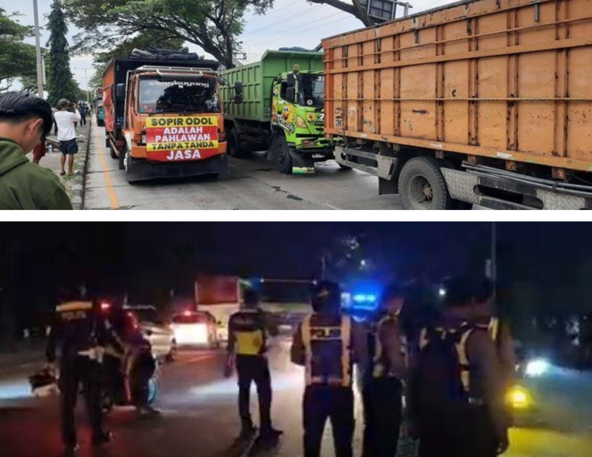 Aksi tersebut merupakan bentuk protes terhadap kebijakan penertiban truk ODOL yang dinilai tidak adil bagi sopir.