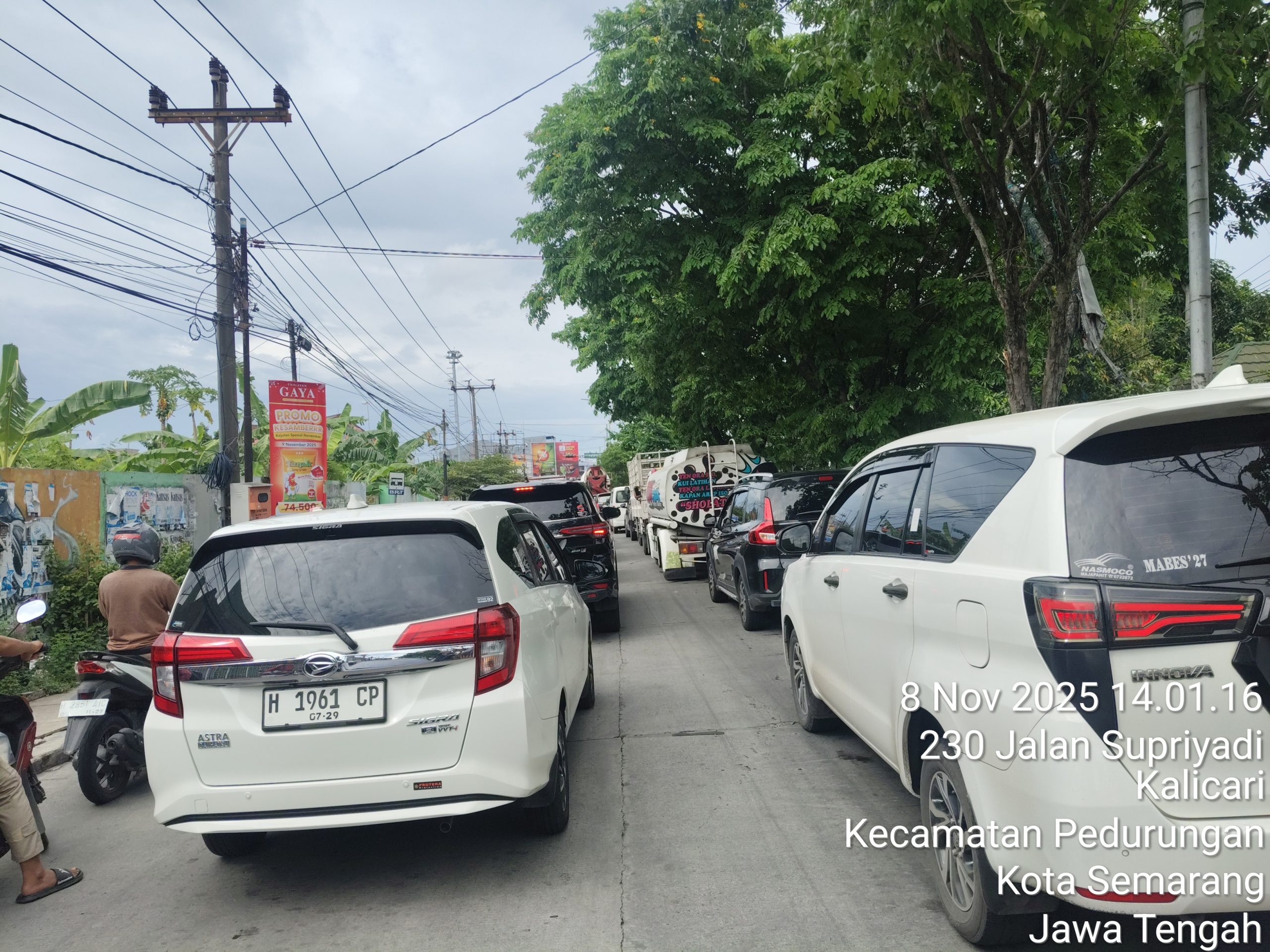 SEMARANG, binnews.id — Arus lalu lintas di Jalan Supriyadi, tepatnya arah menuju Tlogosari, Kecamatan Pedurungan, Kota Semarang, mengalami kemacetan cukup panjang pada Sabtu (8/11/2025) siang. Pantauan di lokasi menunjukkan antrean kendaraan roda empat dan roda dua mengular hingga hampir satu kilometer.