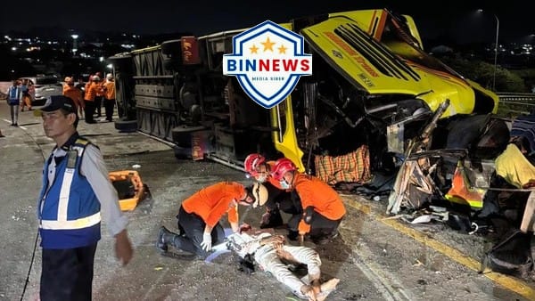 Semarang, binnews.id – Kecelakaan bus terjadi di Simpang Susun Exit Tol Krapyak, Kota Semarang, Jawa Tengah, pada Senin (22/12/2025) dini hari.