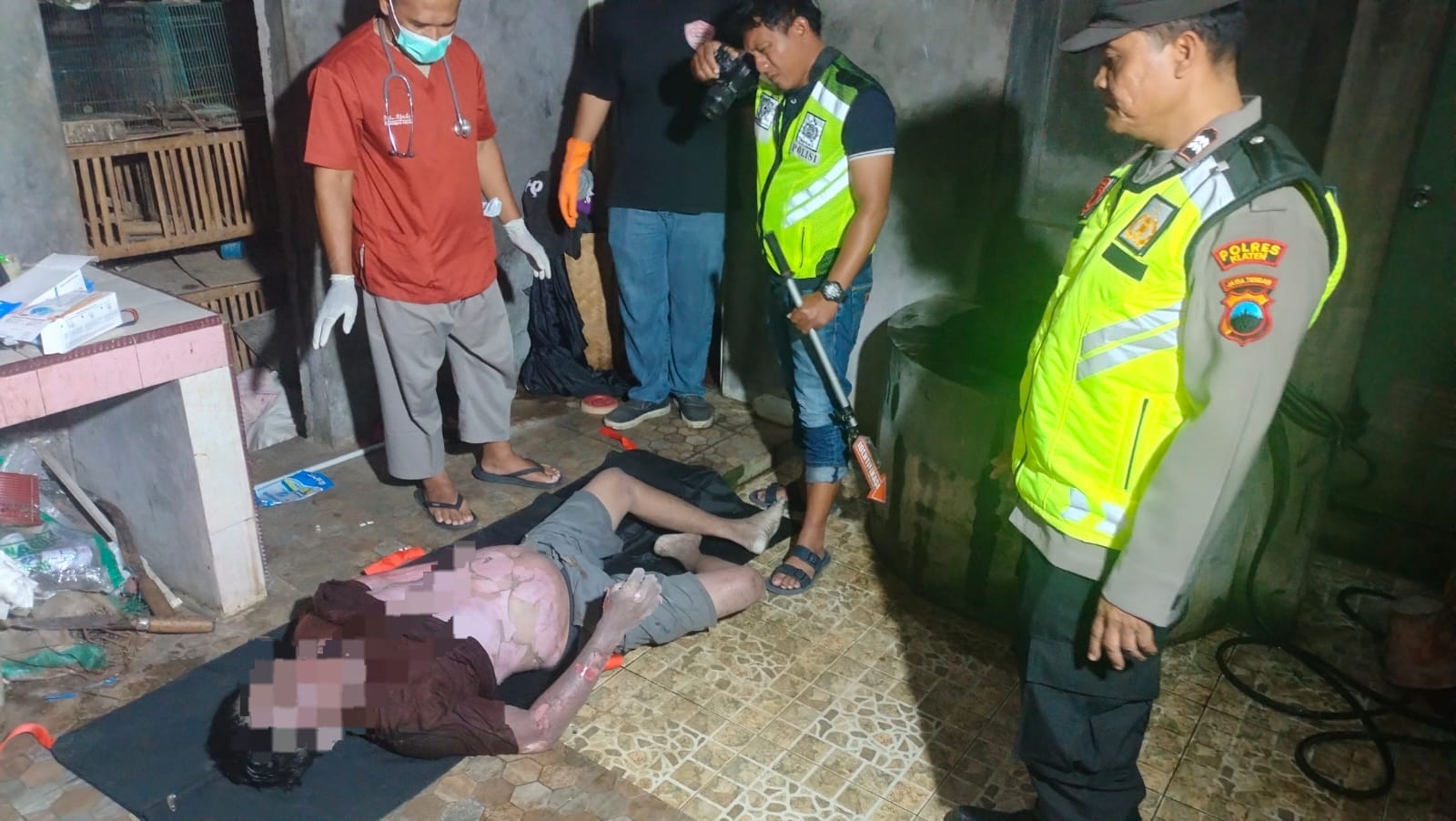 Petugas kepolisian yang datang ke lokasi kemudian melakukan evakuasi korban. Korban diketahui bernama Jarot (34), seorang pedagang, beragama Islam, warga Dukuh Grendeng, Desa Sobayan, Kecamatan Pedan, Kabupaten Klaten.