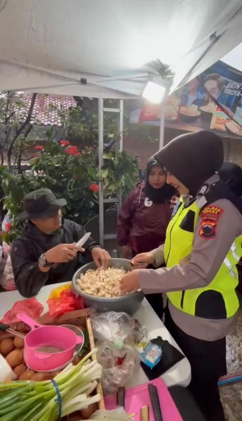 Polwan Cantik Bantu Memasak untuk Pengungsi Bencana Alam di Jepara