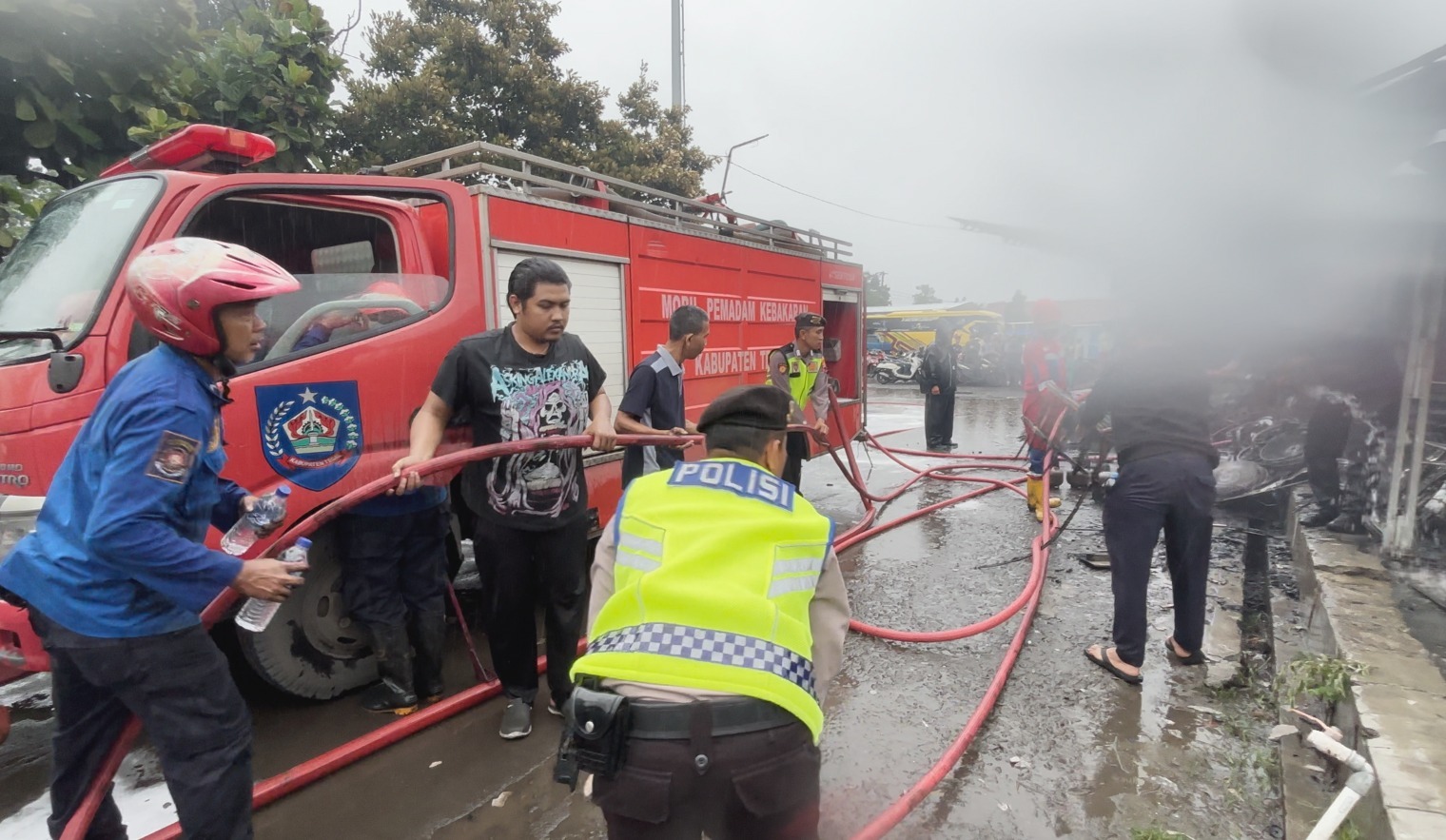 Pamapta Polres Tegal Sigap Tangani Kebakaran Kios Pasar Loak di Sub Terminal Bus Adiwerna