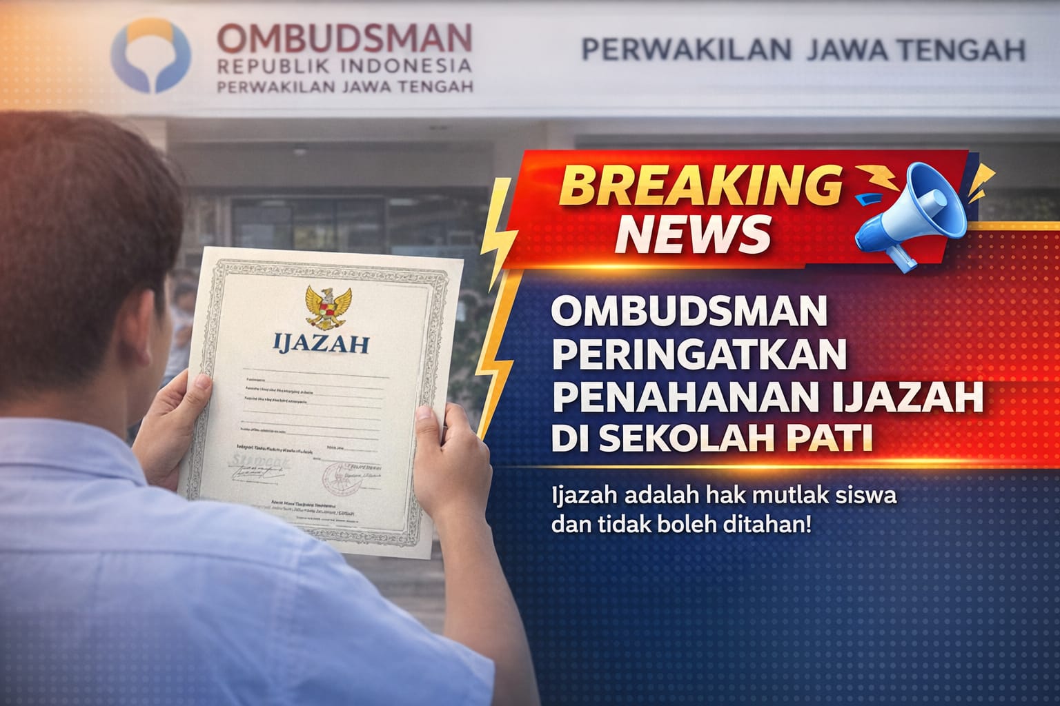Pelaksana Harian Kepala Perwakilan Ombudsman RI Jawa Tengah, Sabarudin Hulu, menegaskan bahwa ijazah merupakan hak mutlak siswa yang tidak boleh ditahan oleh satuan pendidikan.
