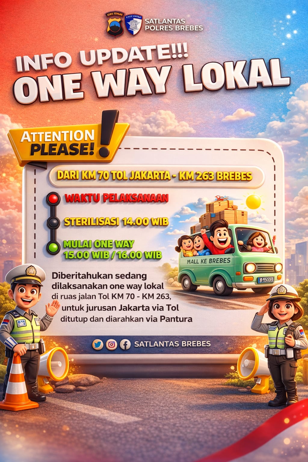 Info Update, Di Berlakukan One Way Nasional Sepenggal Hari Ini Dari Cikatama Ke Brebes