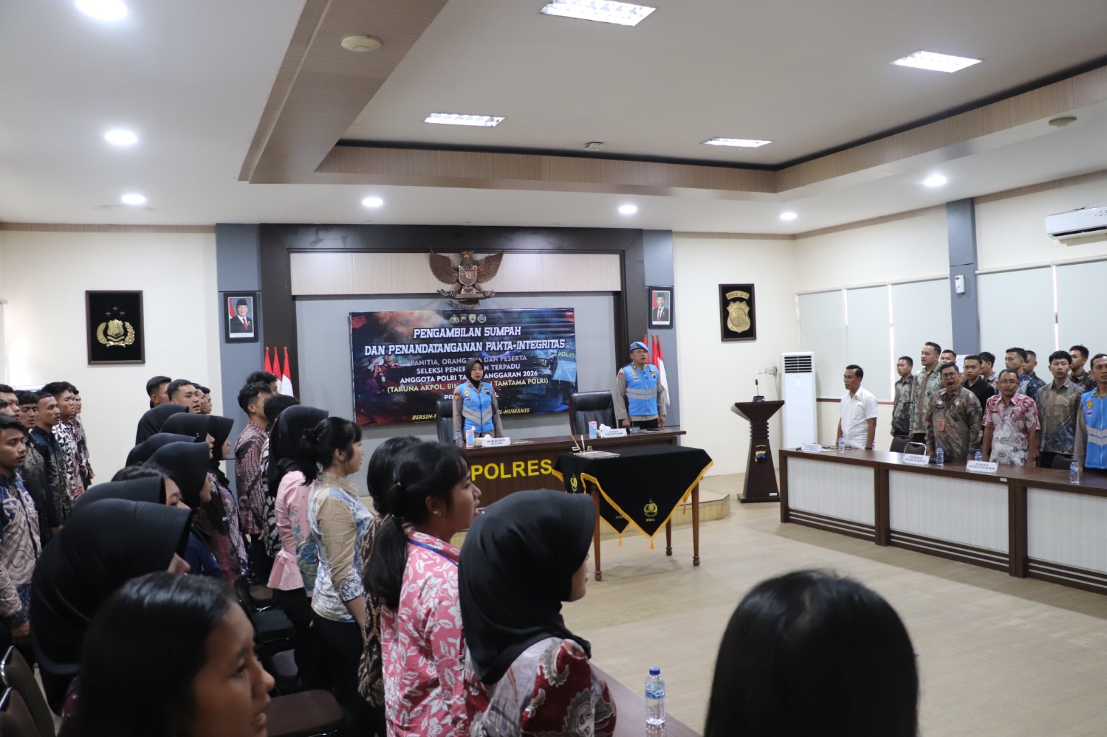 Kendal, binnews.id — Polres Kendal melaksanakan kegiatan pengambilan sumpah dan penandatanganan pakta integritas panitia, pengawas eksternal, orang tua, dan peserta seleksi penerimaan terpadu anggota Polri Tahun Anggaran 2026 di Aula Tribrata Polres Kendal, Selasa (31/3/2026) pukul 10.00 WIB.