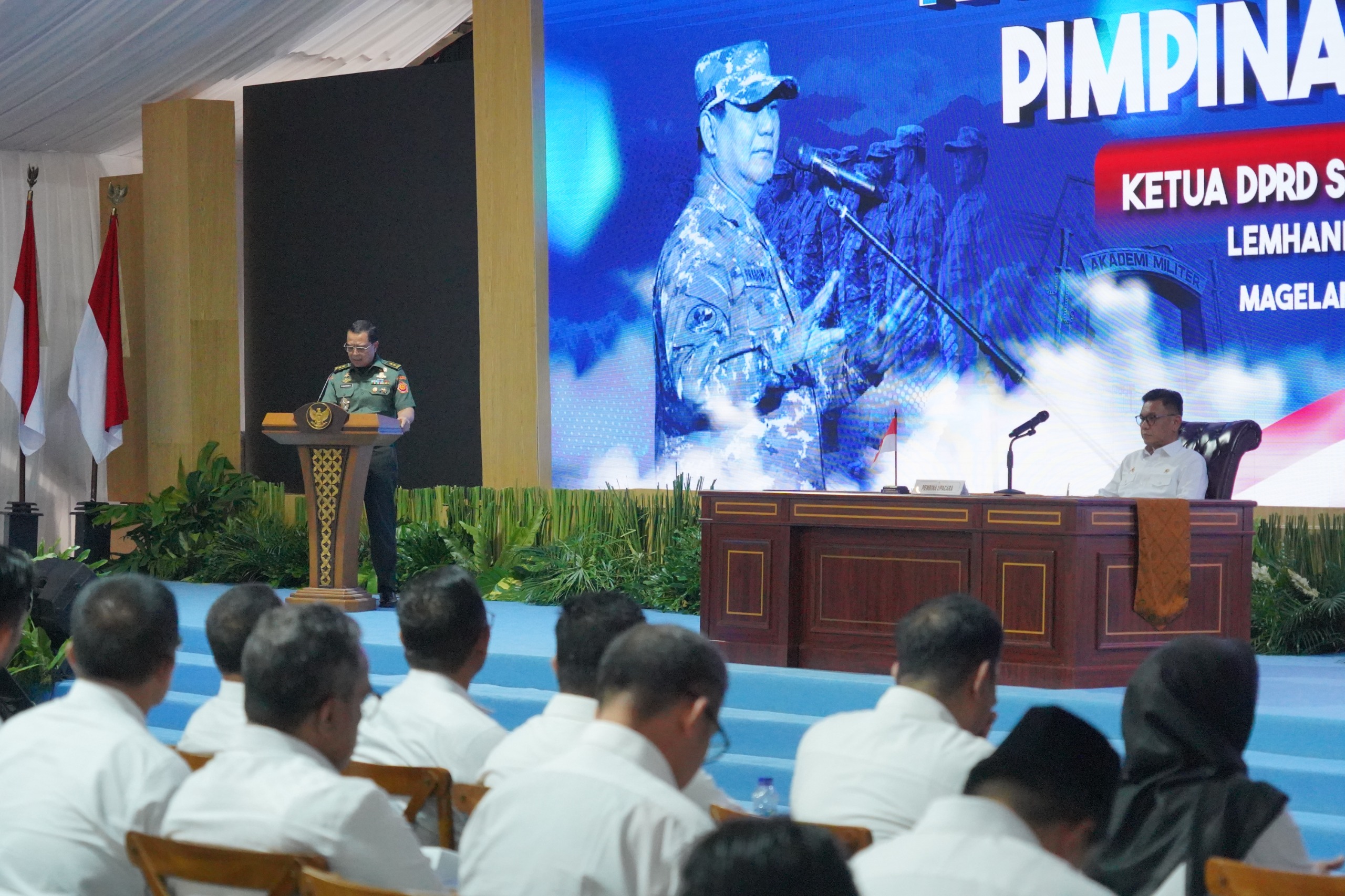 Magelang, binnews.id – Pangdam IV/Diponegoro Mayjen TNI Achiruddin Darojat, S.E., M.Han., mendampingi Panglima TNI Jenderal TNI H. Agus Subiyanto, S.E., M.Si., pada penutupan Kursus Pemantapan Pimpinan Daerah (KPPD) bagi Ketua DPRD se-Indonesia di Akademi Militer Magelang, Minggu (19/4/2026).